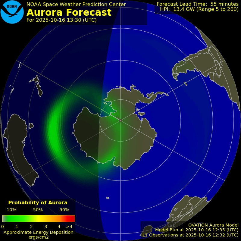 Сторінка транслює прогноз NOAA з інтенсивністі полярного сяйва на найближчі 30 ‒ 90 хвилин за часом UTC по моделі OVATION, показники геомагнітної та сонячної активності, які впливають на проведення радіозв'язку.